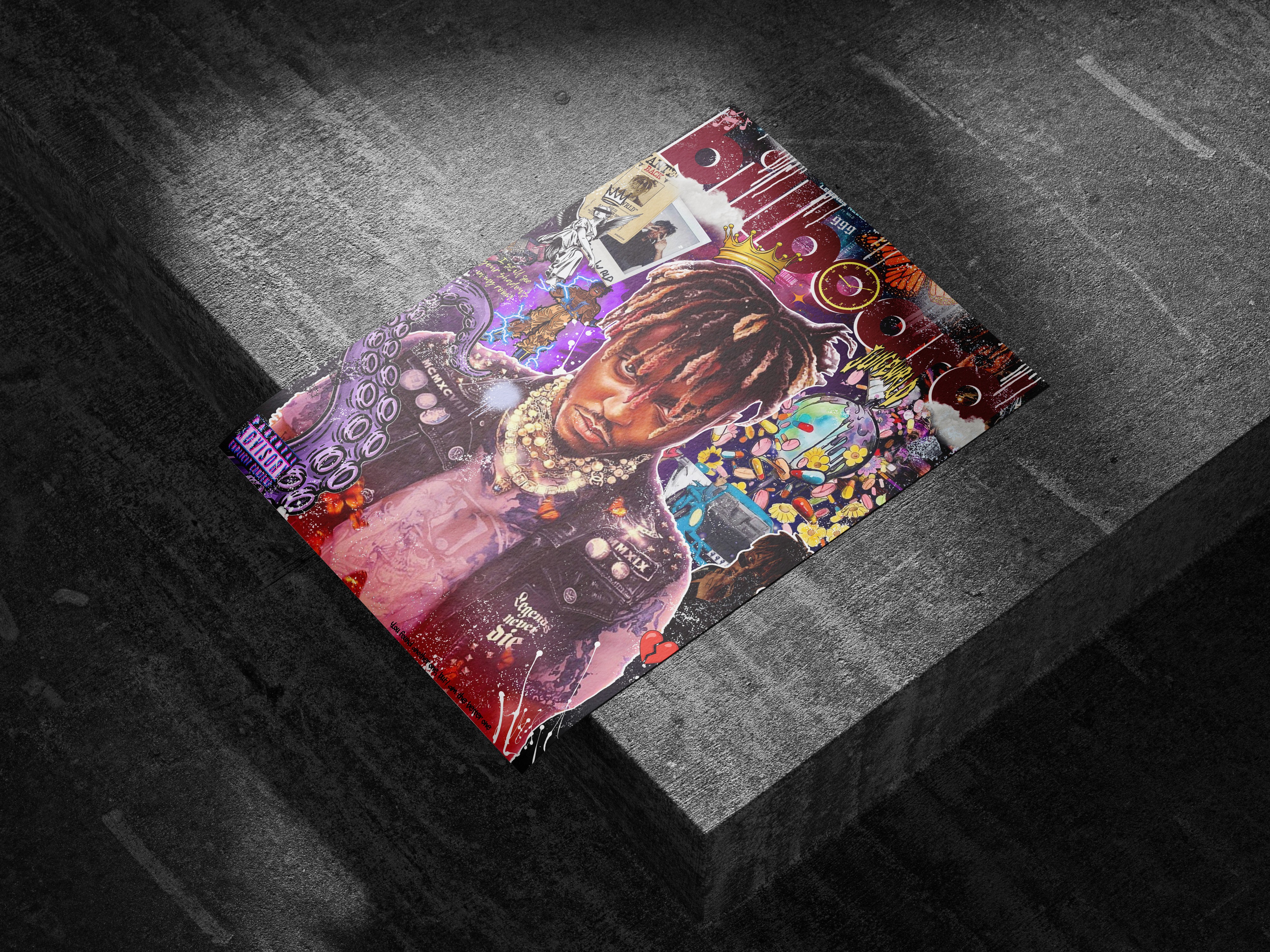Created in-depth research on each artist to understand their personality, journey, and creative influence. I then translate that research into a visual composition that reflects their story. Each poster includes elements that symbolize what the artist values, enjoys, and wants their audience to understand. From career highlights to personal symbols, the background is filled with meaningful references that go beyond surface-level aesthetics. The final design becomes an expressive and layered portrait that connects visual storytelling with the artist's identity.